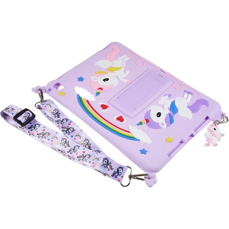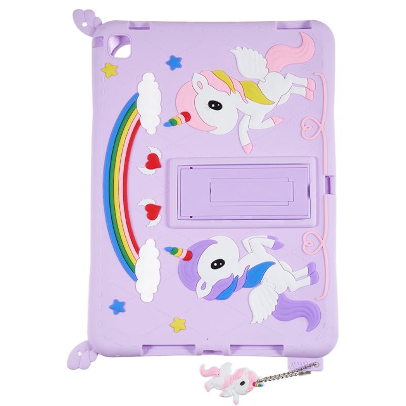 Capa para iPad 9.7 2017/2018, iPad Air, Air 2 Fofa de Unicórnio com suporte e alça - Roxo