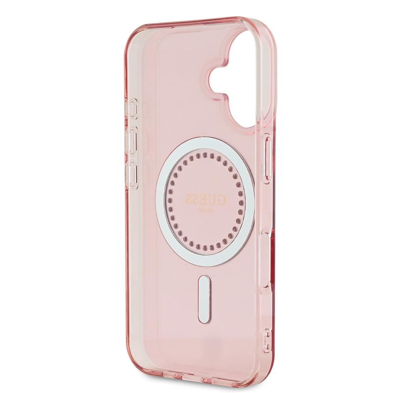 Capa para iPhone 16 Guess IML Rhinestones Ring - Compatível com MagSafe - Rosa