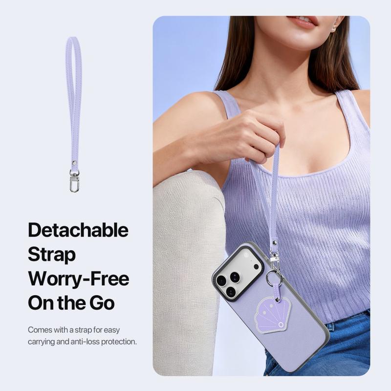 Inclui uma correia amovível para facilitar o transporte durante viagens, deslocações ou actividades diárias. Proporciona uma segurança adicional contra perdas, ao mesmo tempo que dá ao seu iPhone 17 Pro um toque de acessório na moda.