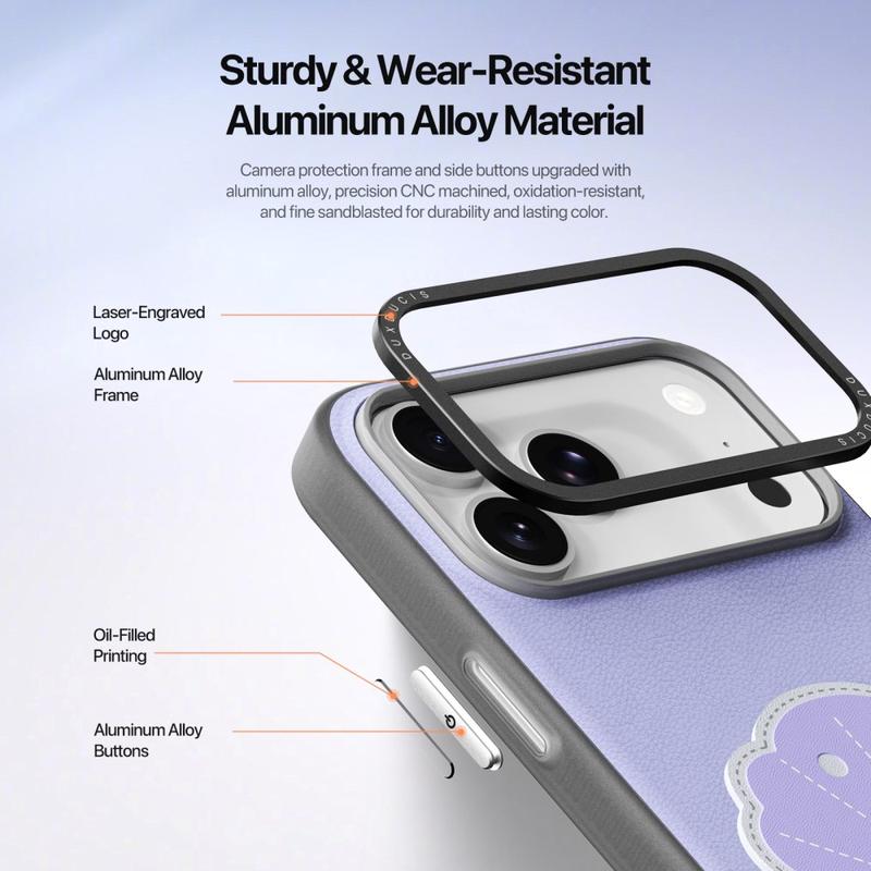 Inclui uma correia amovível para facilitar o transporte durante viagens, deslocações ou actividades diárias. Proporciona uma segurança adicional contra perdas, ao mesmo tempo que dá ao seu iPhone 17 Pro Max um toque de acessório na moda.