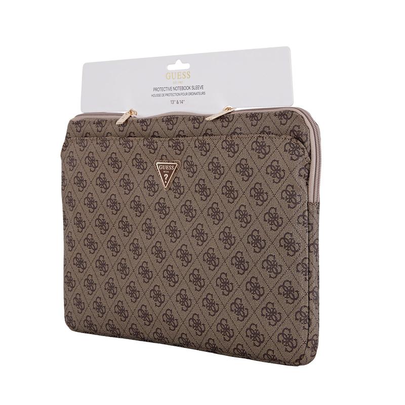 Capa para portátil com logótipo triangular com bolso com fecho de correr Guess 4G - Proteção elegante para dispositivos de 14 polegadas
