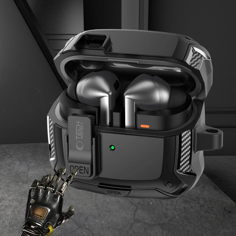Capa Tech-Protect Carbonox para Samsung Galaxy Buds3, Galaxy Buds3 Pro, Galaxy Buds3 FE - Proteção robusta com chaveiro