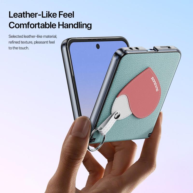 A capa Dux Ducis Luvy combina um design elegante com a praticidade do dia a dia, oferecendo uma proteção refinada para o seu Samsung Galaxy Z Flip7. Fabricada em poliuretano de alta qualidade e materiais de PC duradouros, esta capa melhora o aspeto do seu telemóvel, proporcionando conforto e fiabilidade para a utilização diária.