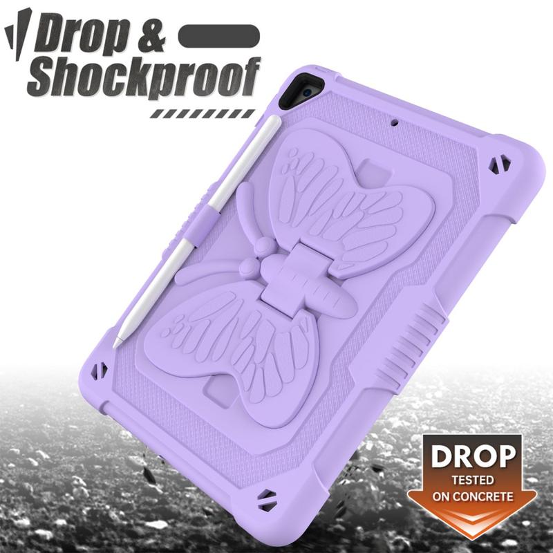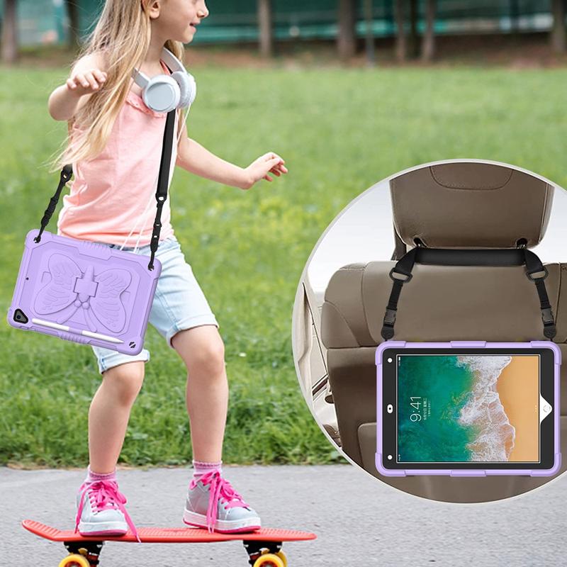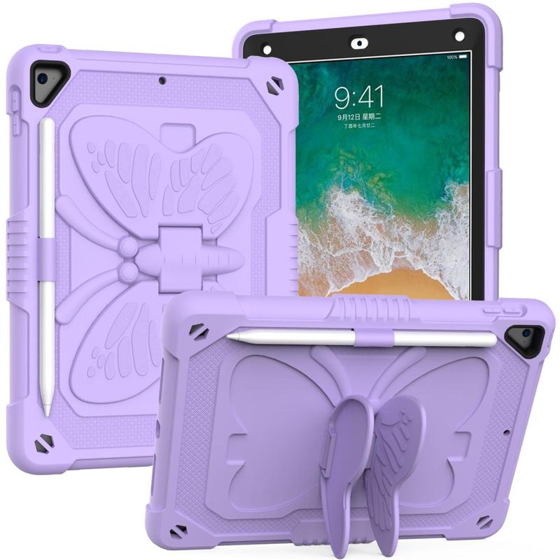 Capa para tablet em forma de borboleta com suporte para PC + silicone e alça para iPad de 9,7 polegadas (2018)/(2017)/iPad Air 2 - Roxo
