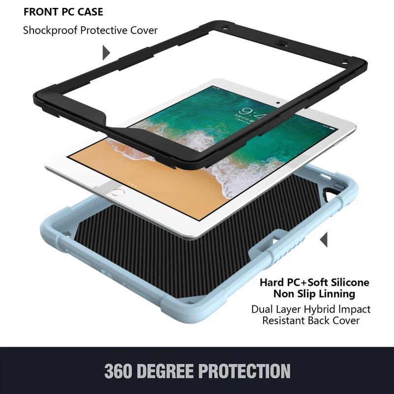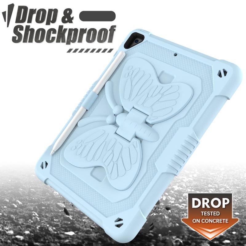 Capa para tablet em forma de borboleta com suporte para PC + silicone e alça de ombro para iPad 9,7 polegadas (2018)/(2017)/iPad Air 2 - Azul