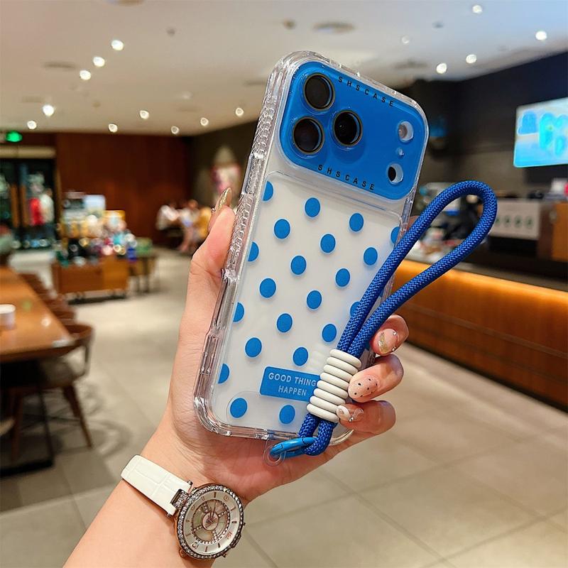 Dê charme e proteção ao seu iPhone 17 Pro Max com esta capa híbrida Polka Dot. Fabricada com uma mistura de TPU e PC, oferece durabilidade, flexibilidade e proteção diária contra riscos e quedas. A parte posterior transparente apresenta um design divertido de bolinhas e inclui uma película de vidro temperado para proteger a sua câmara. Com uma correia de pulso a condizer e a frase motivacional "GOOD THINGS HAPPEN", esta capa combina estilo, positividade e funcionalidade num só.