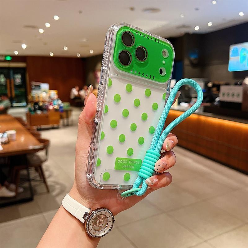 Dê charme e proteção ao seu iPhone 17 Pro Max com esta capa híbrida Polka Dot. Fabricada com uma mistura de TPU e PC, oferece durabilidade, flexibilidade e proteção diária contra riscos e quedas. A parte posterior transparente apresenta um design divertido de bolinhas e inclui uma película de vidro temperado para proteger a sua câmara. Com uma correia de pulso a condizer e a frase motivacional "GOOD THINGS HAPPEN", esta capa combina estilo, positividade e funcionalidade num só.