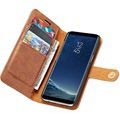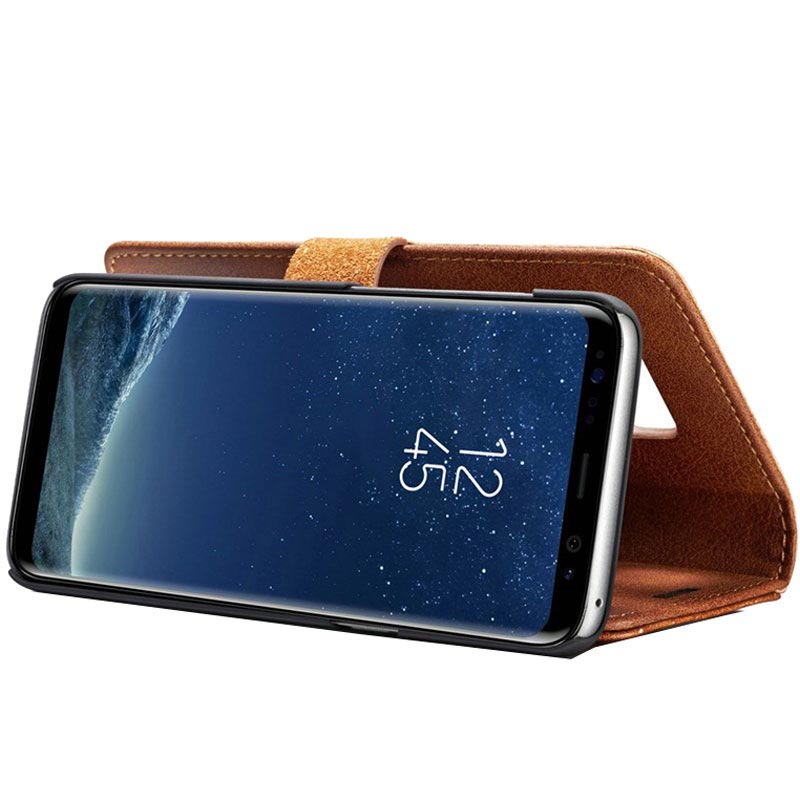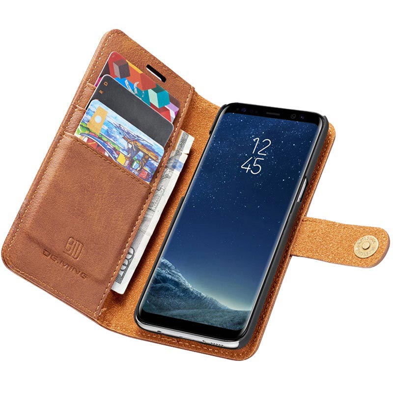 DG.Ming 2-in-1 wallet case for Samsung Galaxy S8 combines a split leather folio with a detachable magnetic cover. This gorgeous case accomodates slots for cards and a pocket for keeping cash or similar small accessories. Metail snap-on closure adds extra security and makes it possible to use the case as a stand for hands-free media viewing. Precise speaker cutout allows you to talk with the case closed.