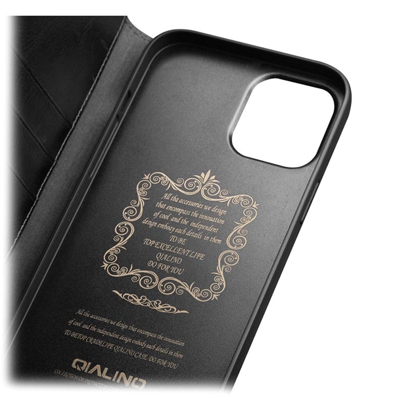 - Bolsa tipo carteira em couro bovino, de alta qualidade, para iPhone 12 Pro Max da Qialino