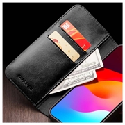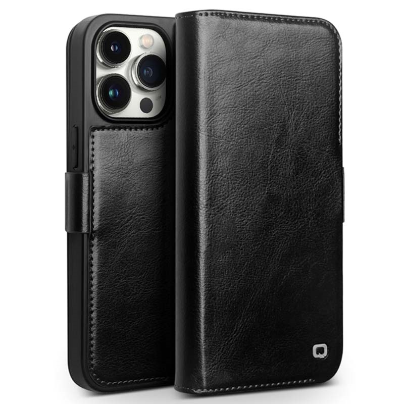 Capa de Pele Tipo Carteira Qialino Classic para iPhone 15 Pro Max - Preto