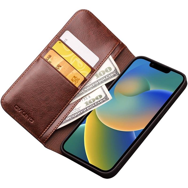 Capa de Pele Tipo Carteira Qialino Classic para iPhone 14