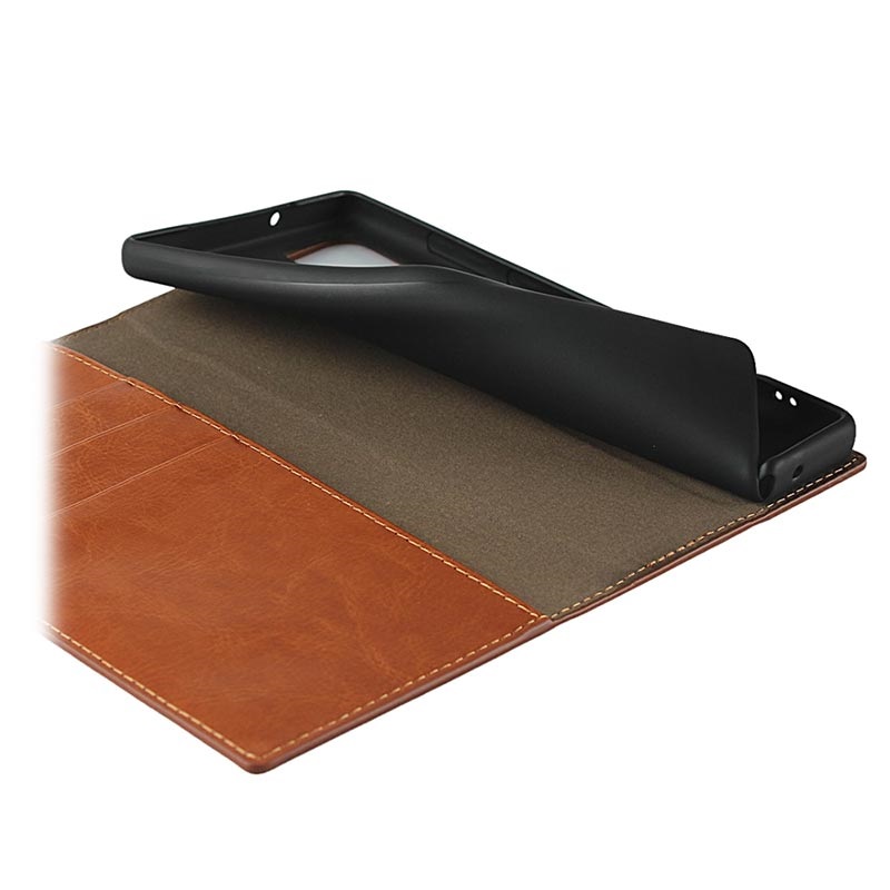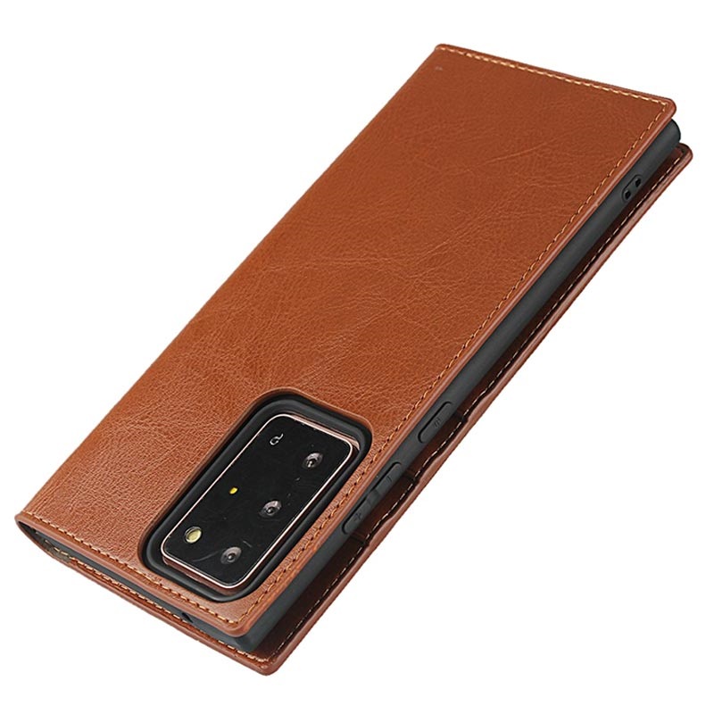 Uma capa de pele tipo carteira de alta qualidade para o seu Samsung Galaxy Note20 Ultra. Dê ao seu telemóvel um ar sofisticado, enquanto o mantém seguro de riscos e danos comuns. Esta capa de pele tipo carteira multifuncional tem ranhuras para cartões e um bolso maior para notas. Além disto, a capa de pele genuína transforma-se em suporte para que possa usar o telemóvel em mãos livres, e o seu corte frontal permite falar, mesmo com a capa fechada.