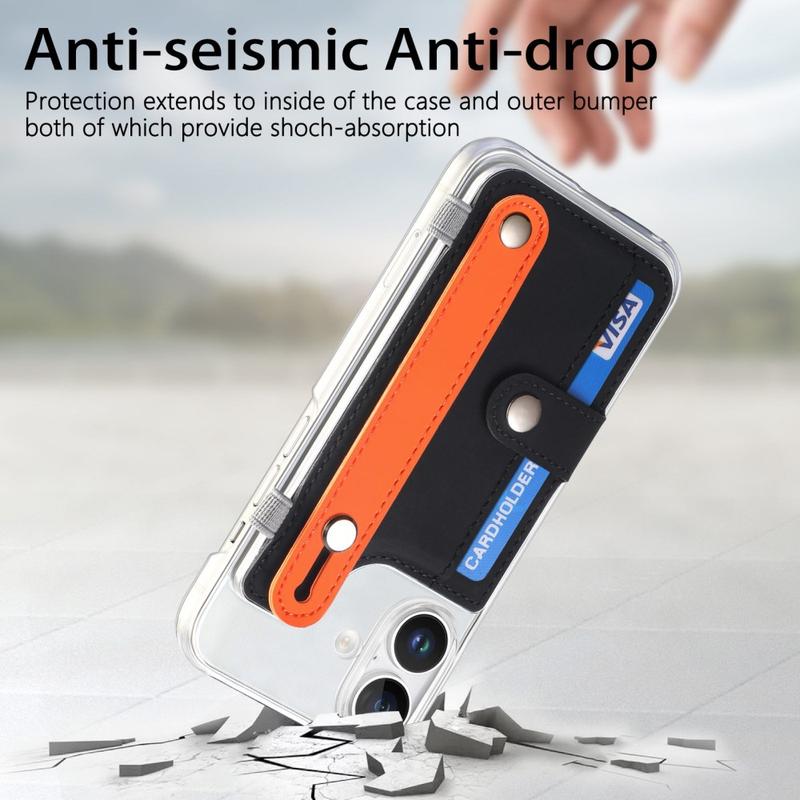 Capa de plástico CY1 com ranhura para cartões, pulseira e suporte para o iPhone 16