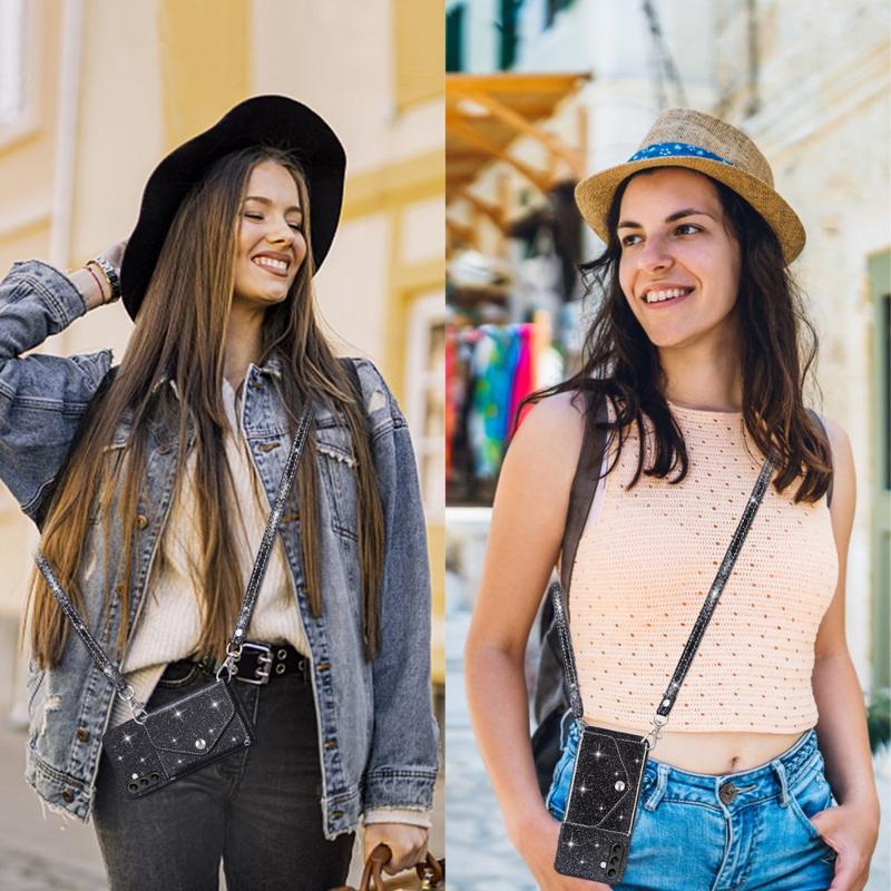 A capa de qualidade premium da série Stardust é a escolha certa para proteger seu Samsung Galaxy A36 de qualquer dano potencial. Tem um porta-cartões na parte de trás com um botão de pressão que é ótimo para armazenar seus cartões essenciais e mantê-los seguros. Uma superfície brilhante e brilhante adiciona um toque de glamour ao seu telefone. Além disso, a capa vem com uma alça de ombro de 150cm, permitindo que você carregue seu Samsung Galaxy A36 com você onde quer que você vá.