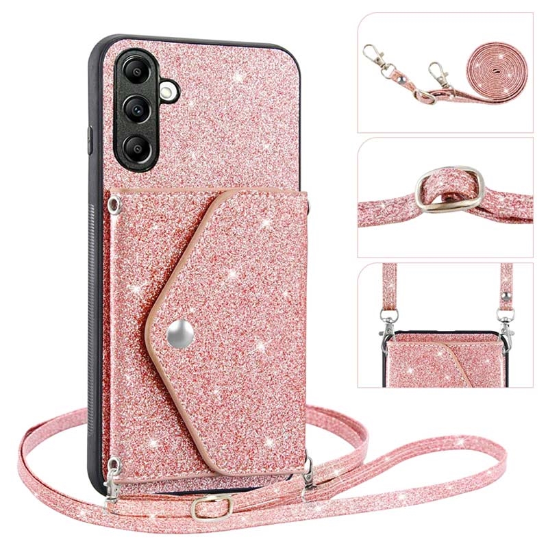 A capa de qualidade premium da série Stardust é a escolha certa para proteger seu Samsung Galaxy A14 de qualquer dano potencial. Tem um porta-cartões na parte de trás com um botão de pressão que é ótimo para armazenar seus cartões essenciais e mantê-los seguros. Uma superfície brilhante e brilhante adiciona um toque de glamour ao seu telefone. Além disso, a capa vem com uma alça de ombro de 150cm, permitindo que você carregue seu Samsung Galaxy A14 com você onde quer que você vá.