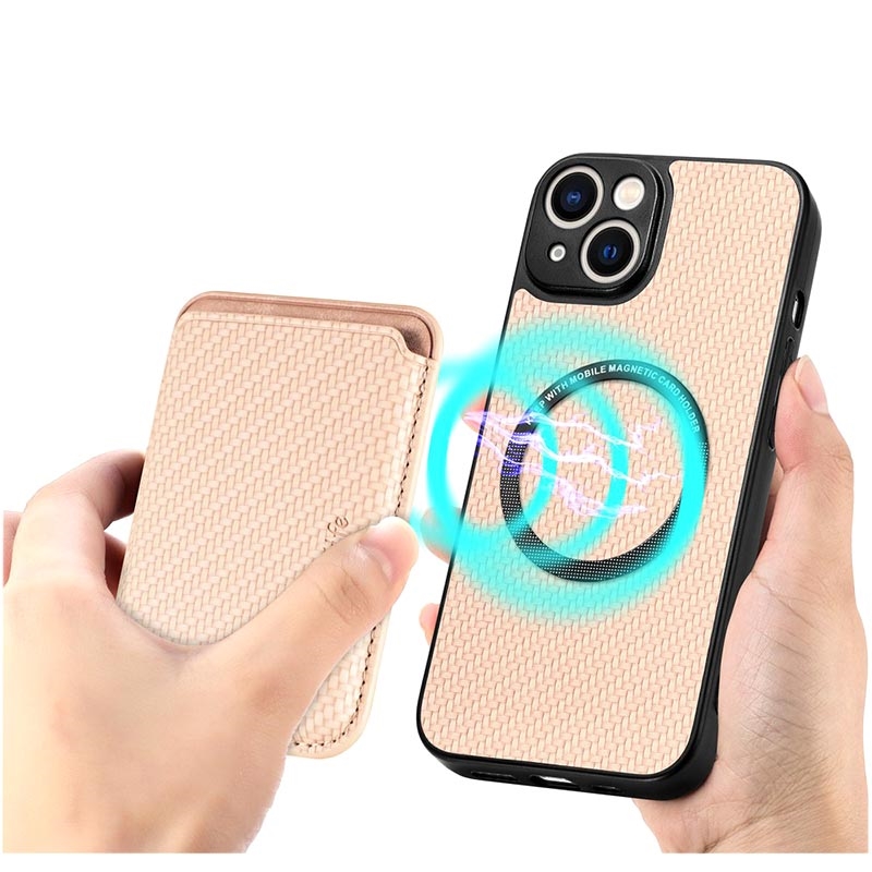 Capa Magnética com Porta-Cartões para iPhone 15 Plus - Fibra de Carbono