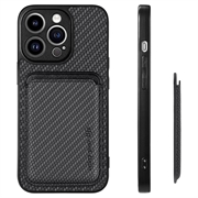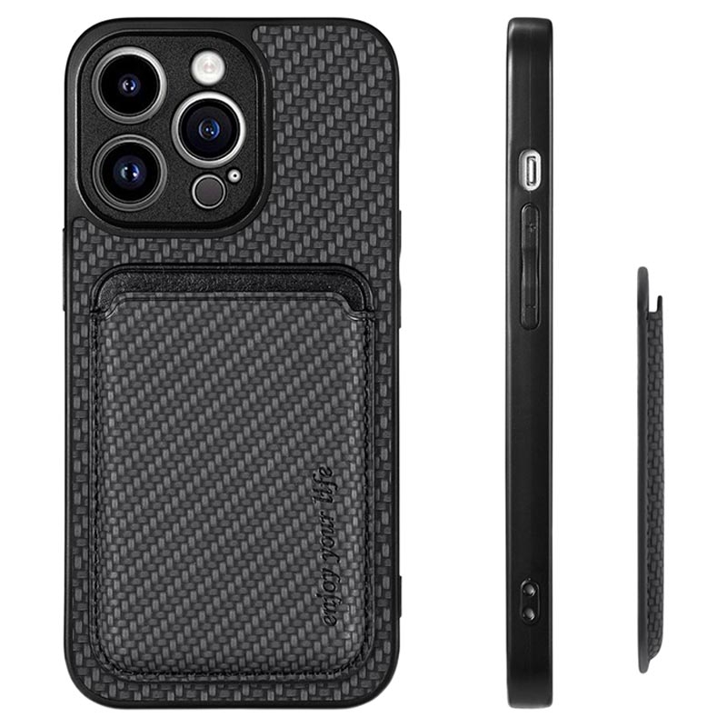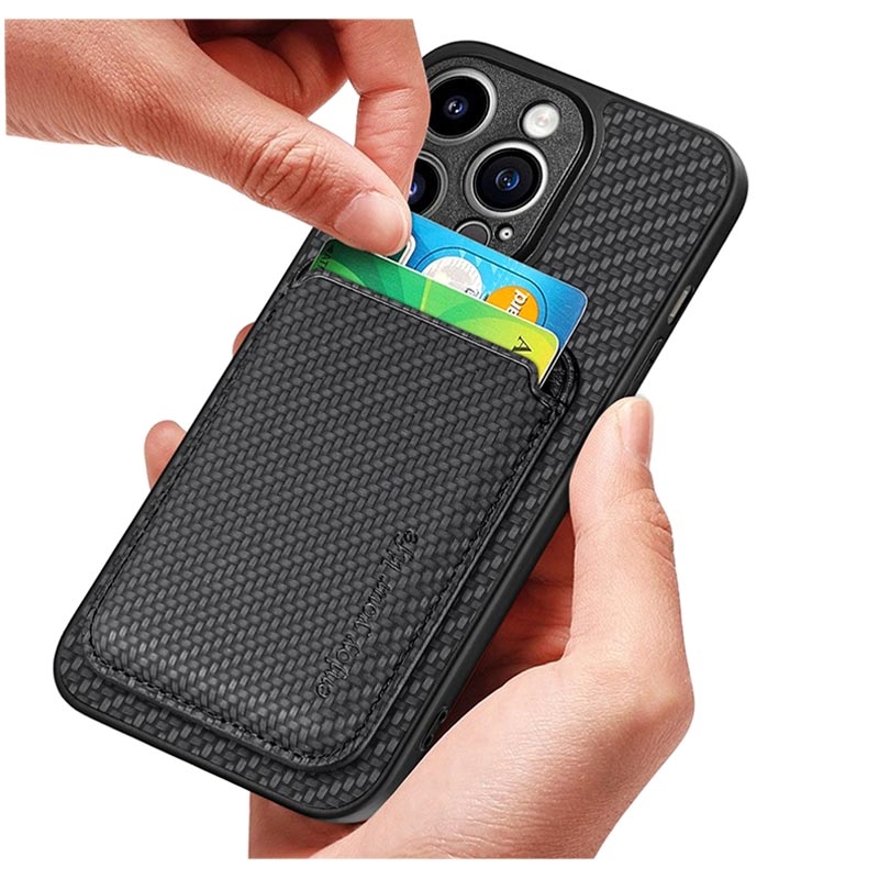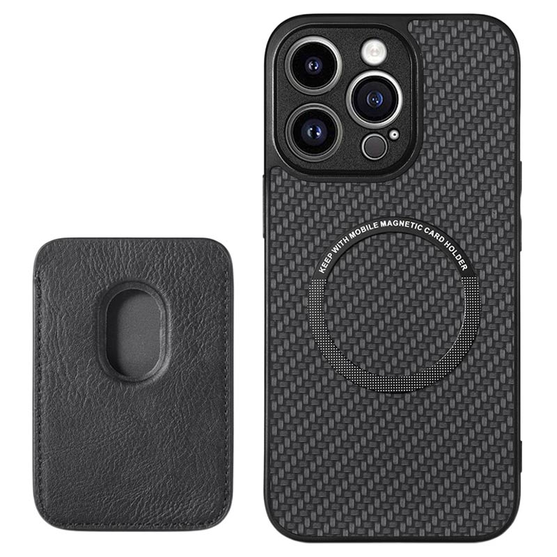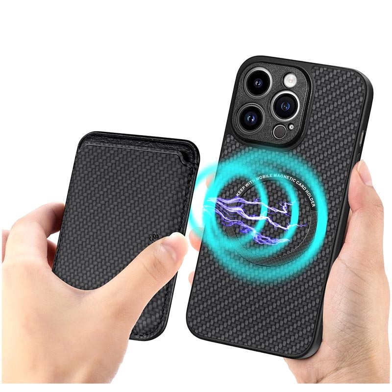 • Capa Magnética com Porta-Cartões para iPhone 15 Pro - Fibra de Carbono