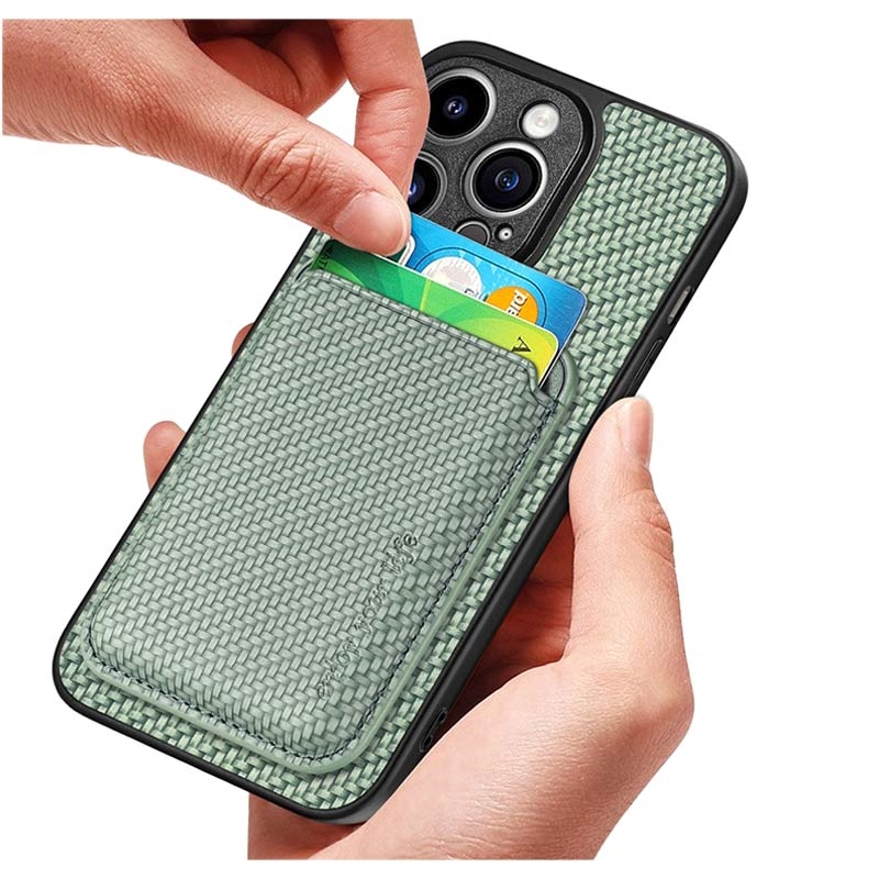 Capa Magnética com Porta-Cartões para iPhone 15 Pro - Fibra de Carbono