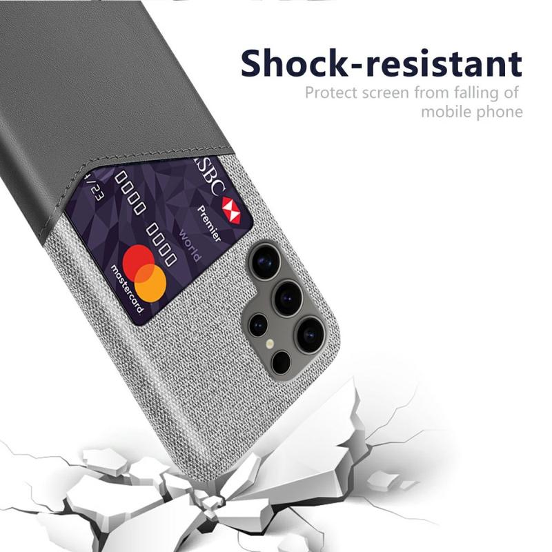 Proteja o seu Samsung Galaxy S25 Ultra, colocando-o na capa com porta-cartões KSQ. A partir desse momento, também os seus cartões de banco e identidade estarão sempre consigo. Feita de materiais resistentes, escuda eficazmente o seu aparelho contra quedas e arranhões.