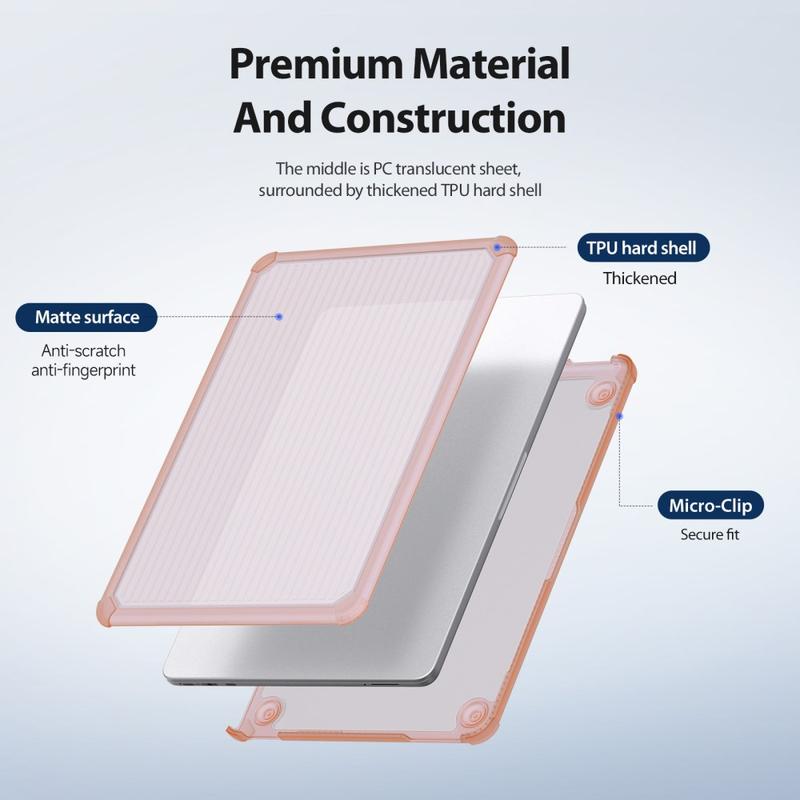 O design moldado com precisão garante um ajuste perfeito com recortes precisos e uma abertura e fecho suaves. As almofadas antiderrapantes salientes na parte inferior melhoram a estabilidade e ajudam a facilitar a circulação de ar para uma melhor dissipação do calor, enquanto o design com microclipes mantém a capa firmemente no lugar e permite uma fácil instalação ou remoção quando necessário.