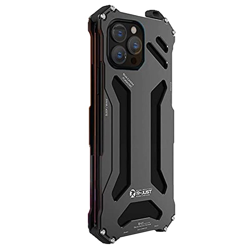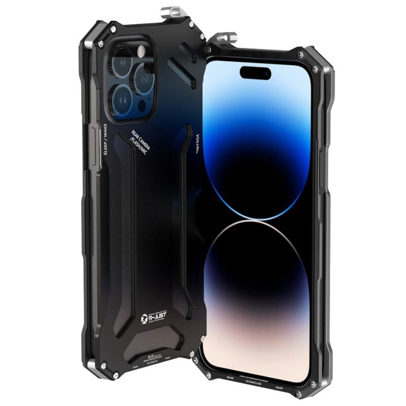 R-JUST Armor Mecânico Metal Capa à Prova de Choque para iPhone 14 Pro Anti-Queda Protetor de Telefone Design Oco