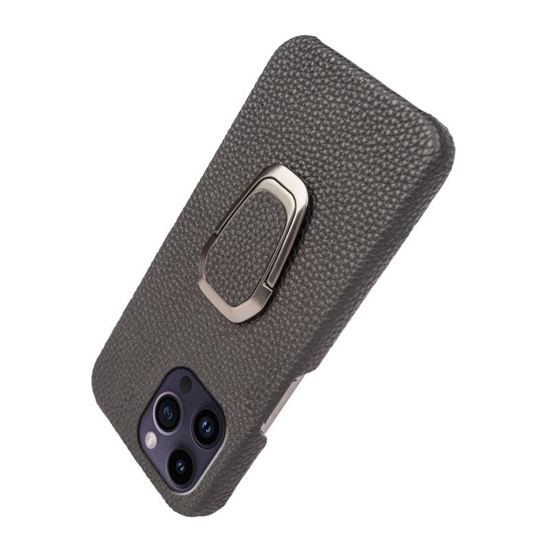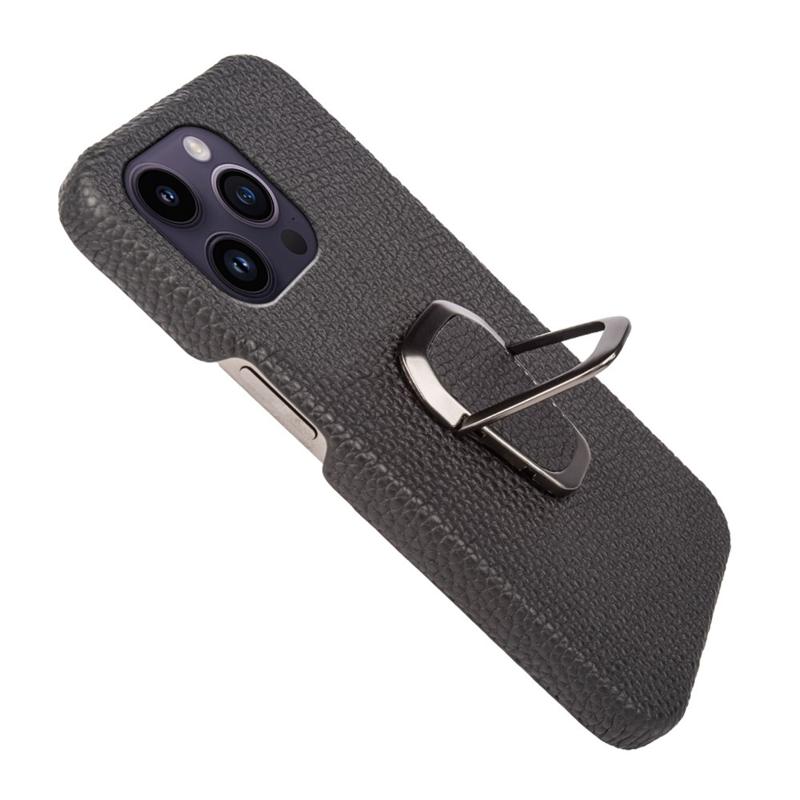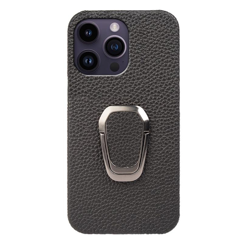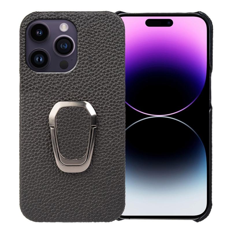 Para iPhone 14 Pro Max Couro Genuíno + Hard PC Concha Protetora Anel Litchi Textura Suporte Suporte Anti-queda Capa de Telefone