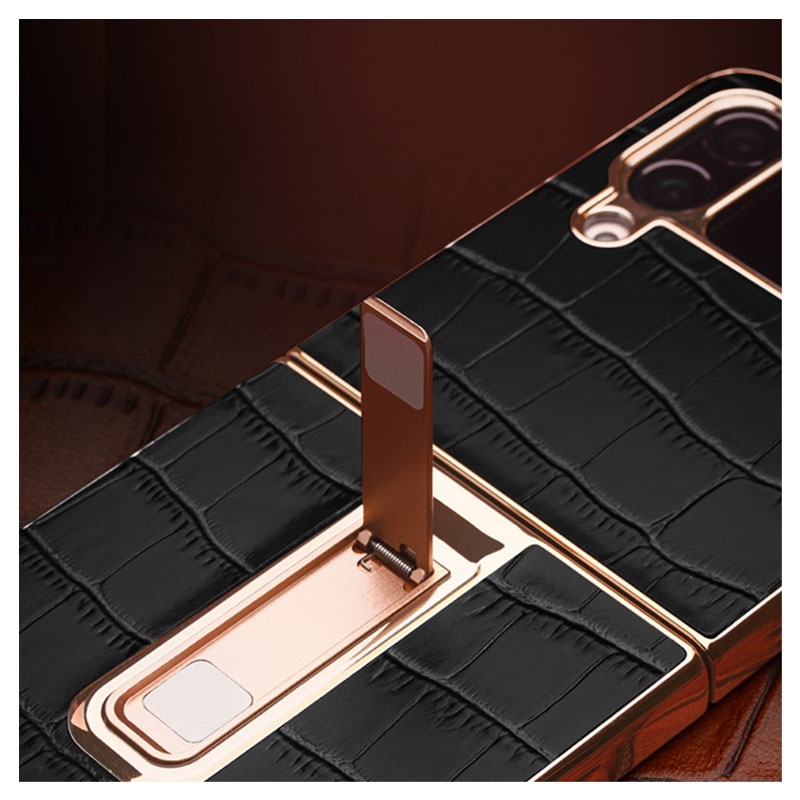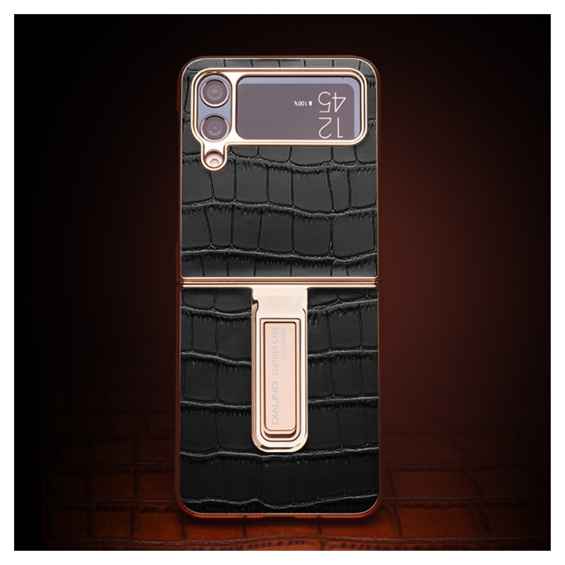 - Estojo revestido em couro Qialino Croco com suporte para Samsung Galaxy Z Flip4