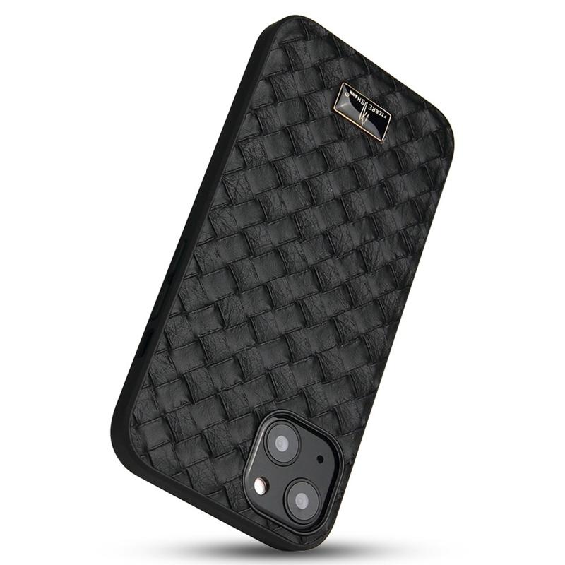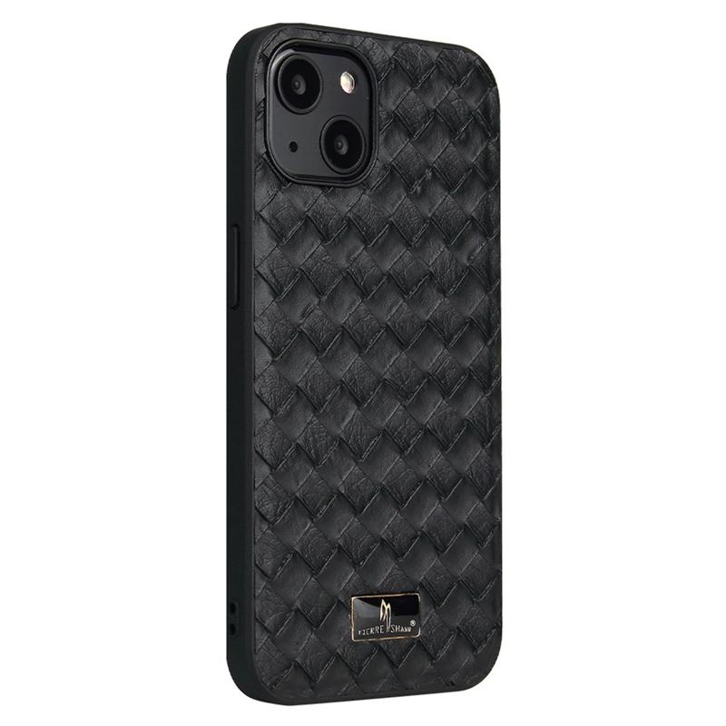 FIERRE SHANN para iPhone 14 anti-riscos capa de telefone ultrafina decoração hardware PU revestido de couro TPU tampa traseira
