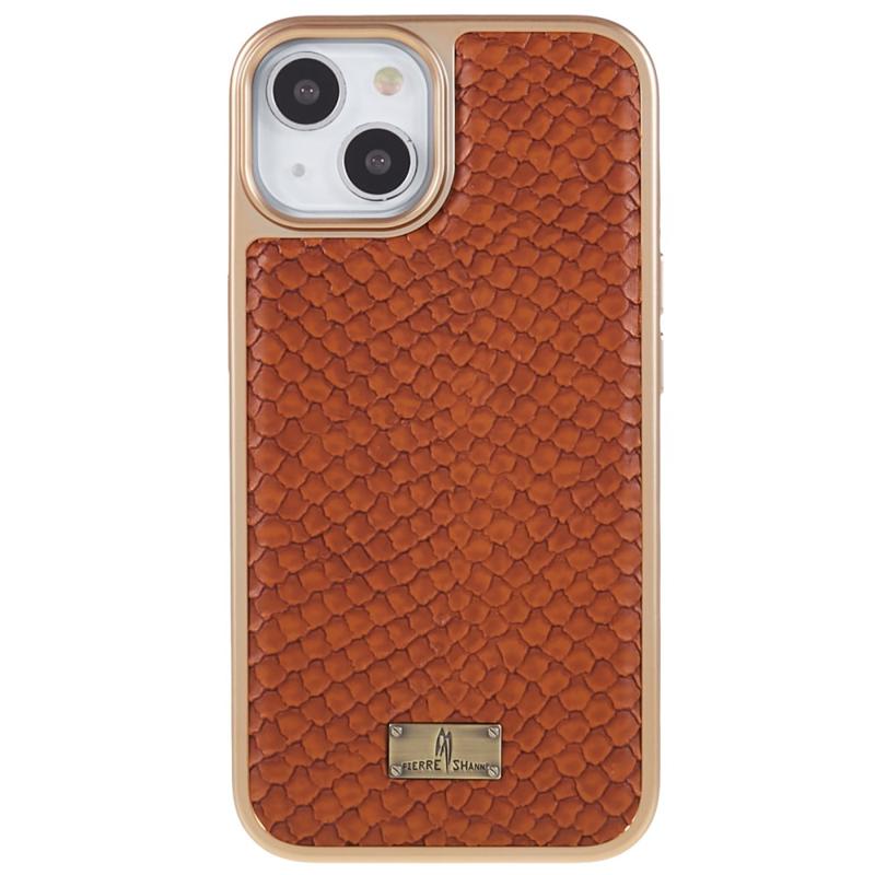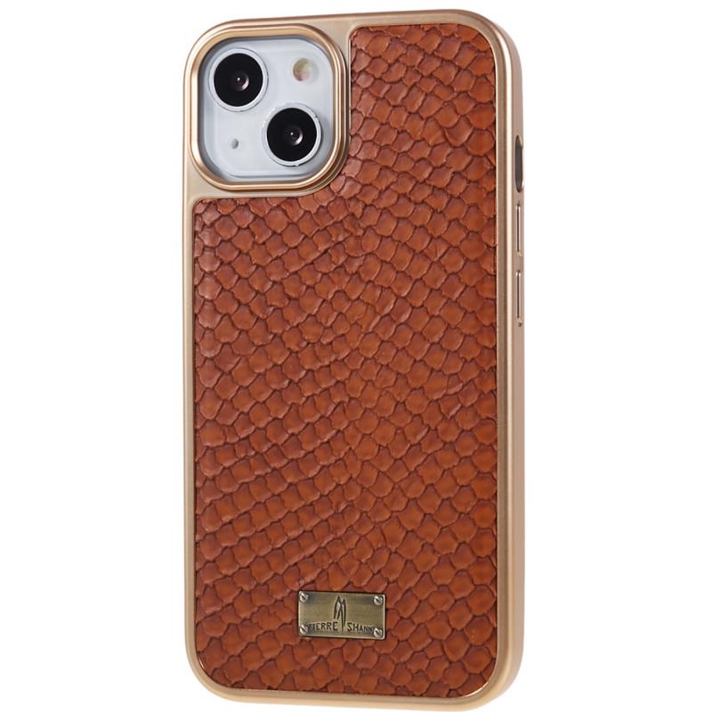 FIERRE SHANN para iPhone 14 Plus Capa de telefone com textura de cobra revestida de couro PU TPU galvanizada à prova de choque e anti-arranhões