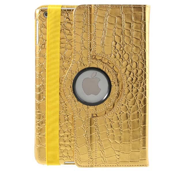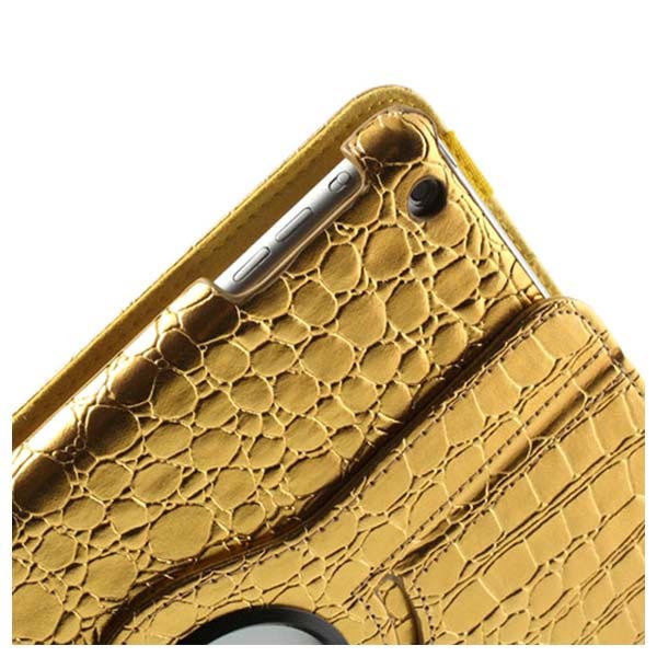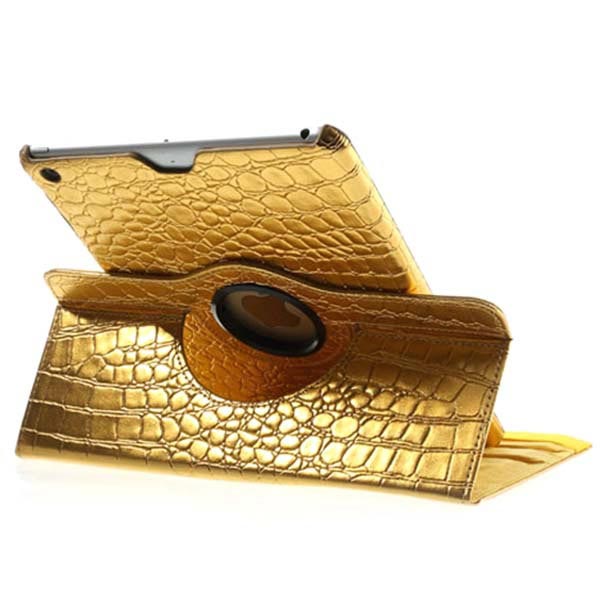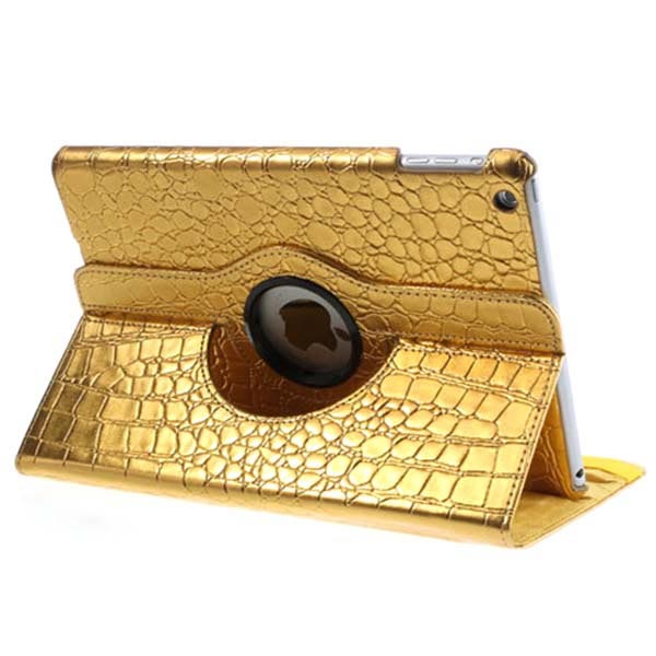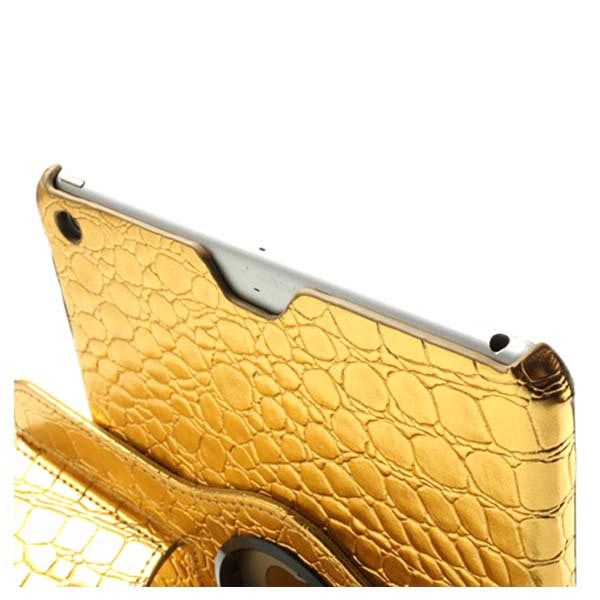 Capa Rotativa de Couro para iPad Air - Crocodilo - Dourado