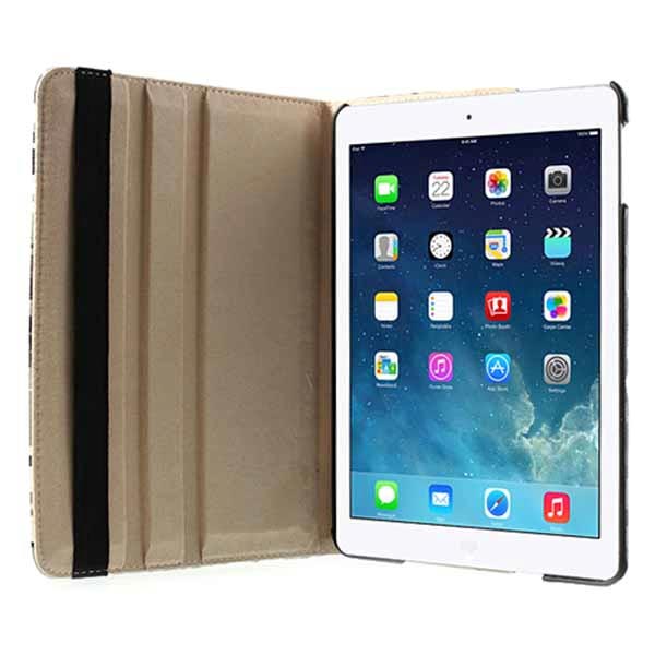 A útil e atraente bolsa rotativa para iPad Air com uma função inteligente protege o seu tablet dos danos normais. Pode rodar o tablet a 360 graus e ajustar no ângulo mais favorável para navegar na internet ou ver conteúdos.