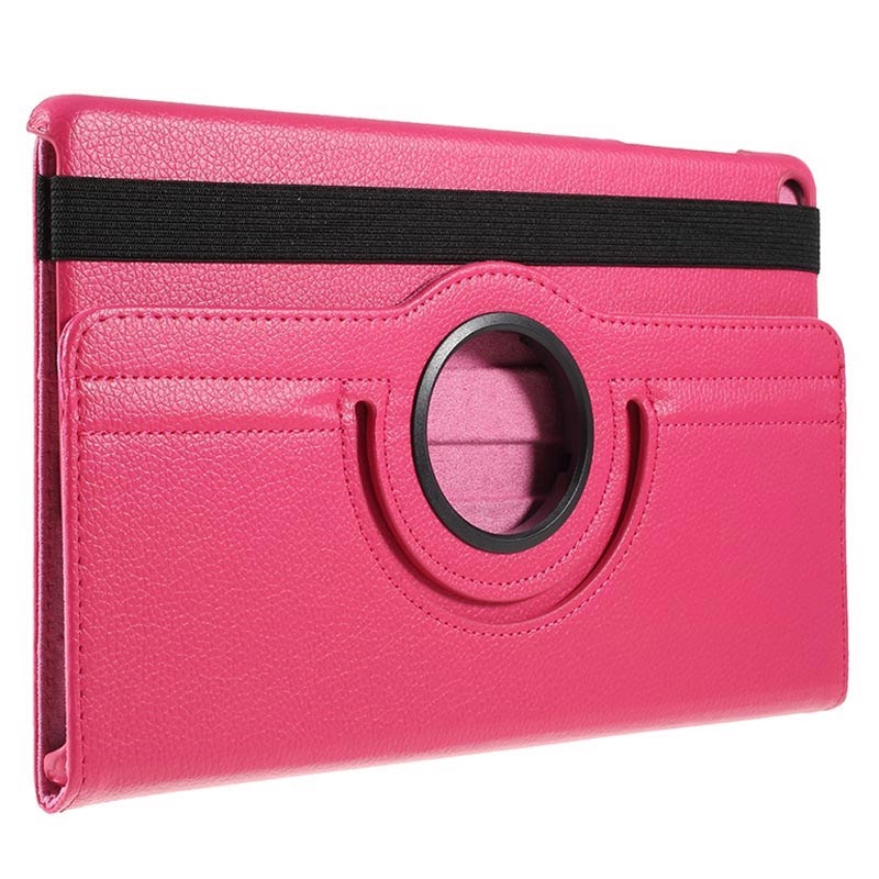 - Bolsa de tablet rotativa também tem uma faixa elástica e forro interno de microfibra