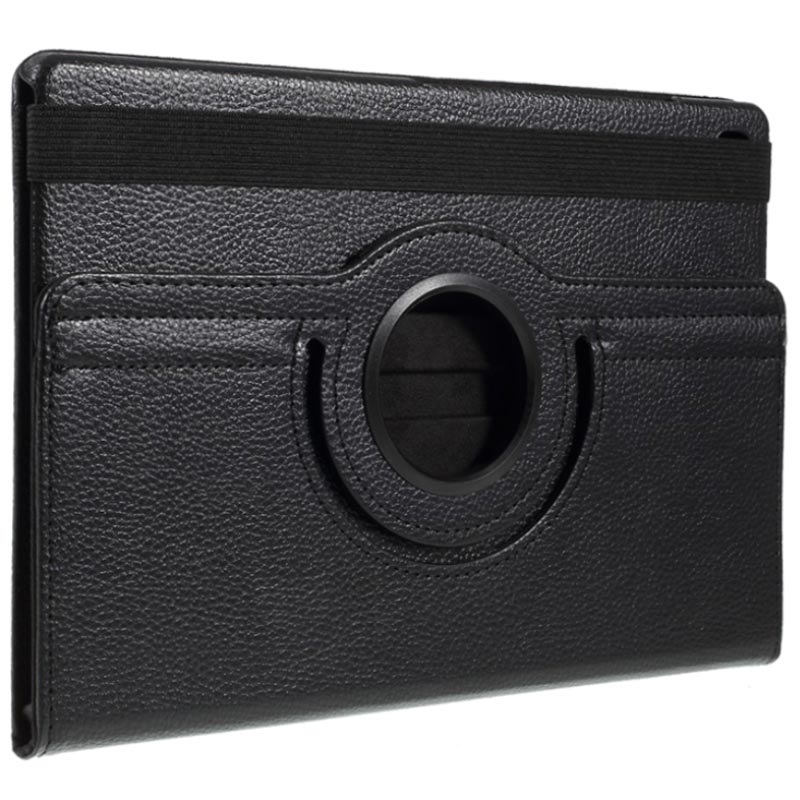 - Bolsa de tablet rotativa também tem uma faixa elástica e forro interno de microfibra