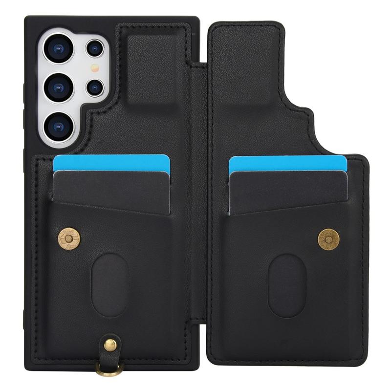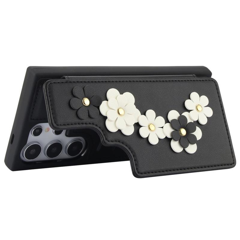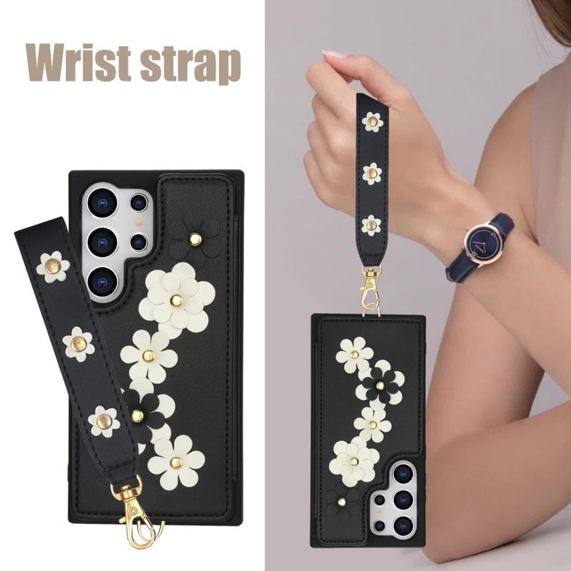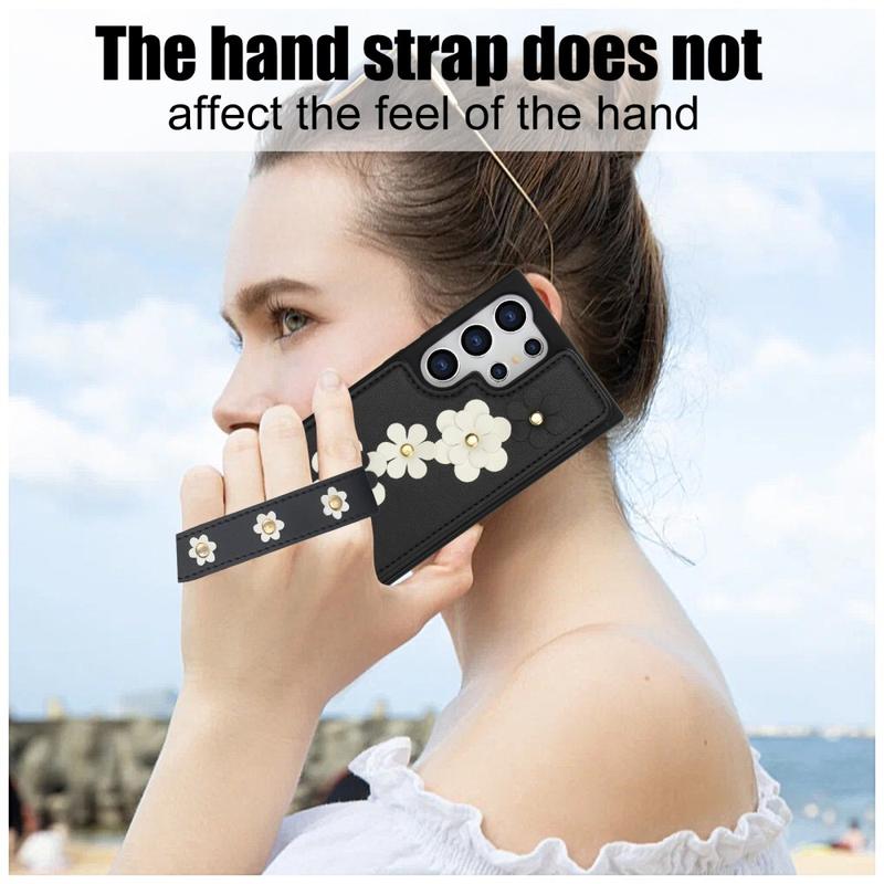 Capa com decoração de flores, alça e ranhuras para cartões para Samsung Galaxy S24 Ultra