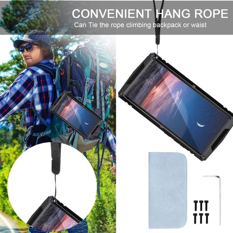 - Aventuras ao ar livre: O design robusto é ideal para caminhadas, acampamentos ou viagens, garantindo que o seu dispositivo está bem protegido.