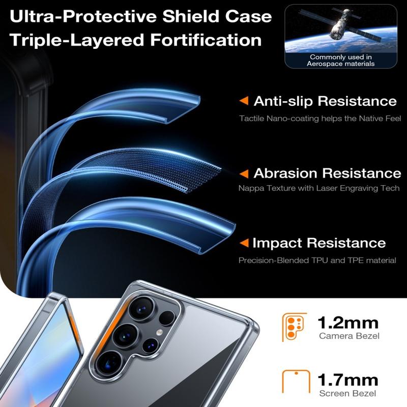 Construída com uma estrutura interna de dispersão de choques e um para-choques TPU reforçado, a capa ajuda a reduzir a força de quedas e impactos acidentais. As zonas de almofada de ar integradas fornecem proteção adicional para o uso diário sem adicionar volume desnecessário.