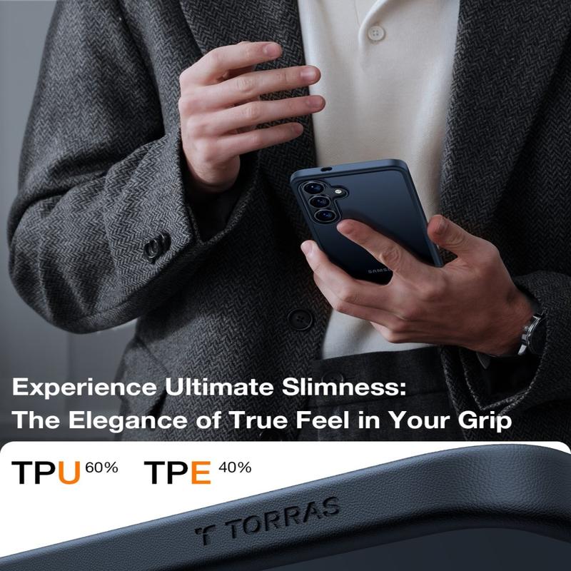 A capa Torras Skin-Touch foi concebida para utilizadores que pretendem uma estética refinada combinada com uma proteção diária fiável. Fabricada a partir de uma mistura de dois materiais, PC rígido e TPU flexível, proporciona durabilidade, mantendo um perfil fino e uma sensação de conforto e suavidade ao toque na mão.