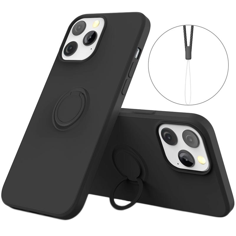 - Capa de silicone líquido com suporte de anel e alça de mão para o iPhone 13 Pro Max