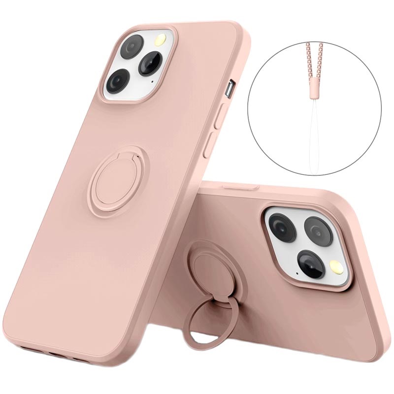 - Capa de silicone líquido com suporte de anel e alça de mão para o iPhone 13 Pro Max