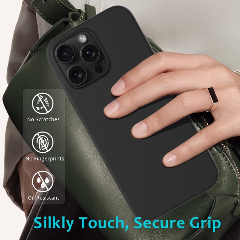 Uma capa protetora perfeita para iPhone 16 Pro Max feita de silicone líquido macio e durável. A capa de silicone líquido para iPhone 16 Pro Max oferece um ajuste ideal, uma sensação de toque suave e, acima de tudo, excelente proteção contra danos diários. Um acabamento fosco macio ao toque é confortável em sua mão e evita impressões digitais.