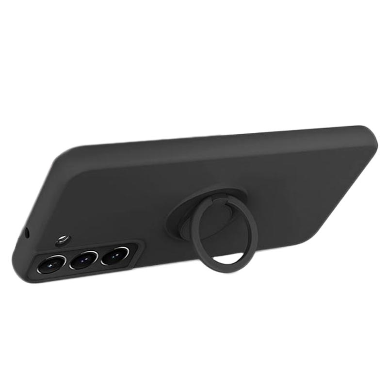 Capa de Silicone Líquido com Suporte de Anel para Samsung Galaxy S22 5G - Preto
