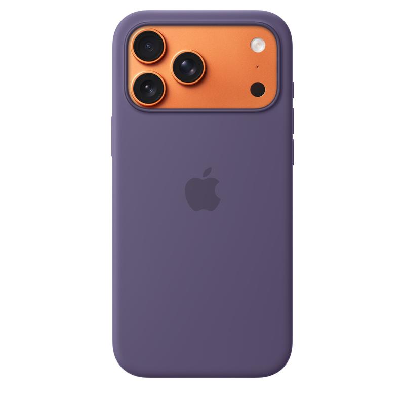- Capa original Apple de silicone com MagSafe, concebida para o iPhone 17 Pro Max