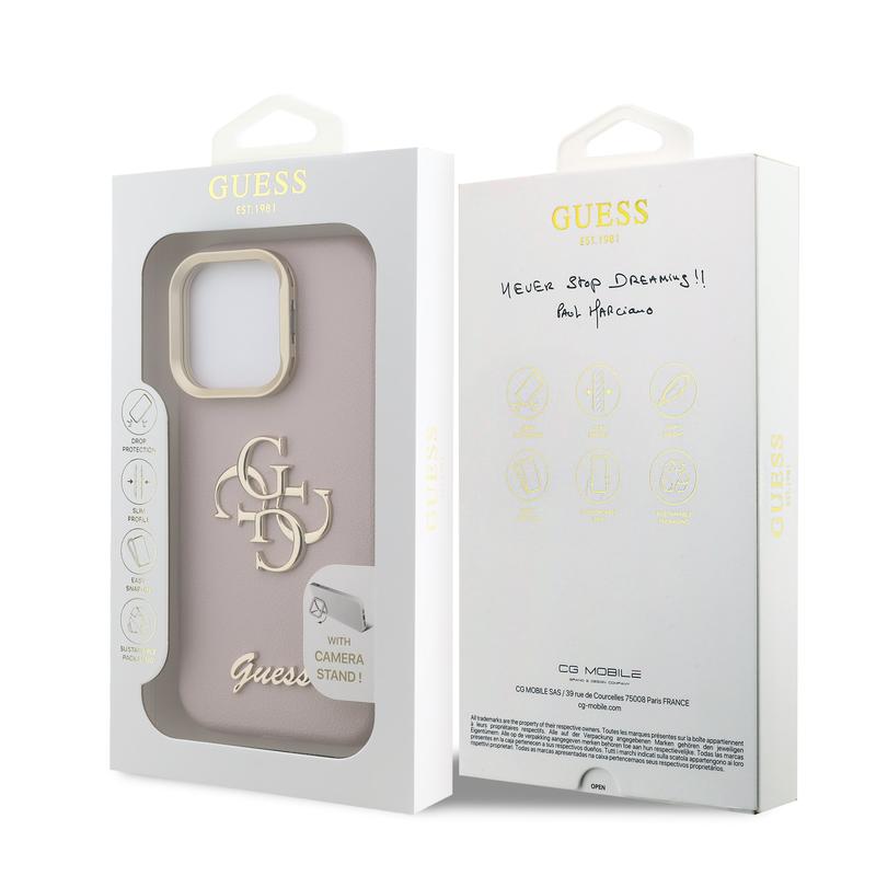 Capa com moldura para a câmara com suporte para o logótipo 4G da Guess para iPhone 16 Pro Max - Estilo de designer com facilidade de utilização em mãos-livres