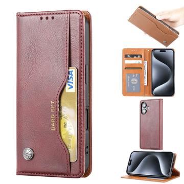Capa tipo carteira para conjunto de cartões para iPhone 16 - Fecho magnético, várias ranhuras para cartões, suporte para telemóvel