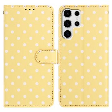 Capa tipo carteira com padrão de bolinhas para Samsung Galaxy S25 Ultra - Proteção elegante e funcional