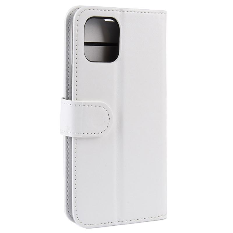 - A bolsa tipo carteira do iPhone 11 Pro é feita de poliuretano e material TPU