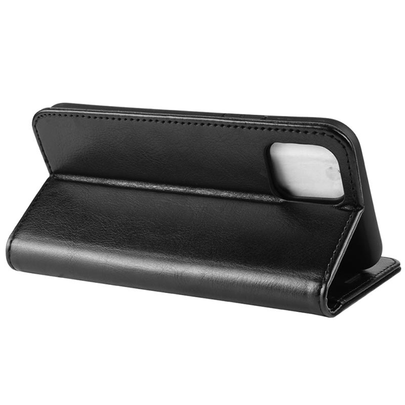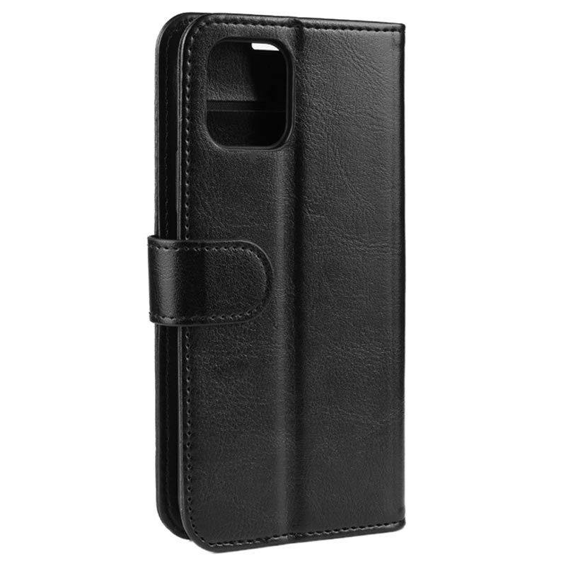 - A bolsa tipo carteira do iPhone 11 Pro é feita de poliuretano e material TPU