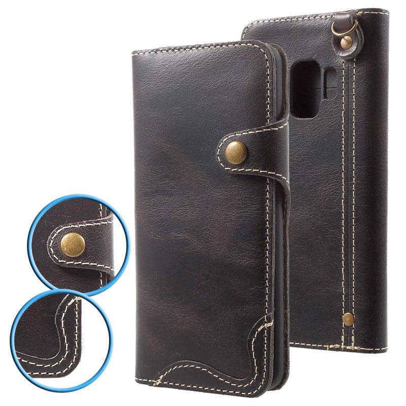 - A retro style wallet flip case for Galaxy S9 crafted from genuine leather