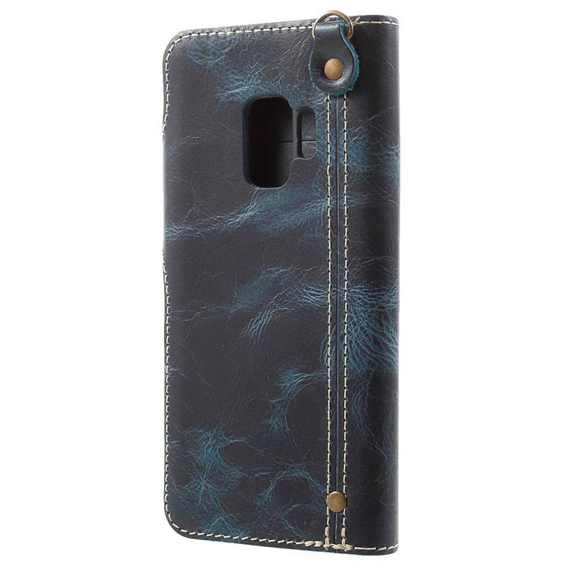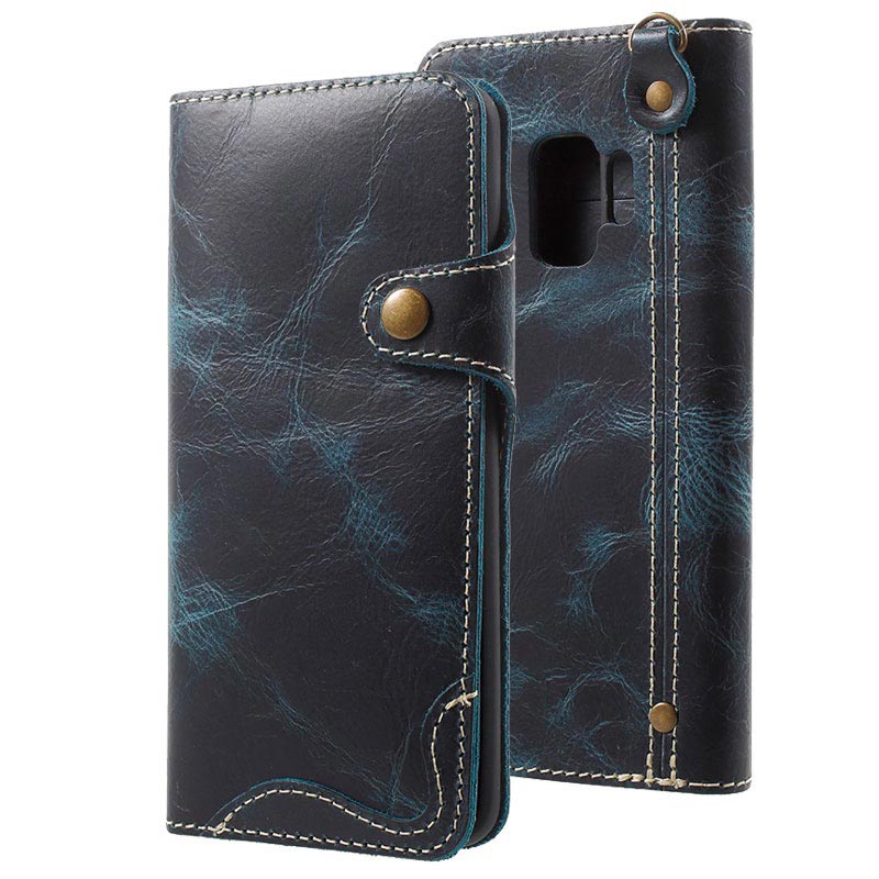 - Uma capa tipo carteira de estilo retro para Galaxy S9, trabalhada a partir de couro genuíno