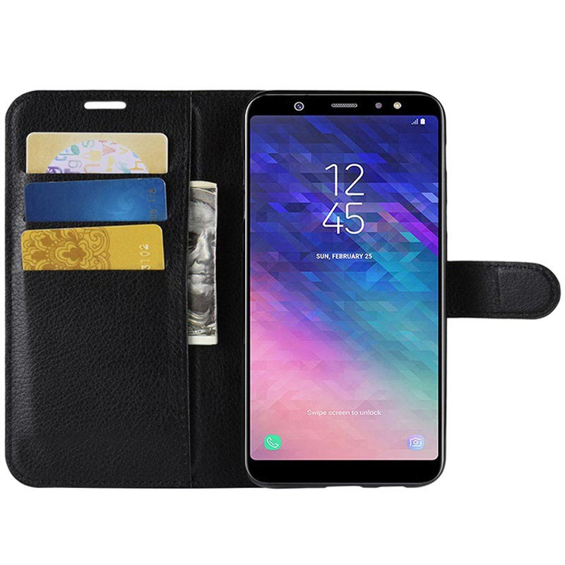 - Capa tipo carteira simples mas útil para o seu Samsung Galaxy A6+ (2018)